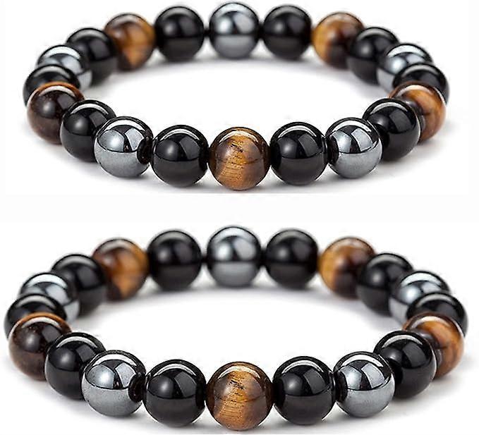 Triple Protection Bracelet, 2pcs Black Obsidian, Tiger Eye, Stone, Hematite, Tiger Eye, Triple Bracelet, Brings Good Luck, Unisex Bracelet, 16cm, Ston