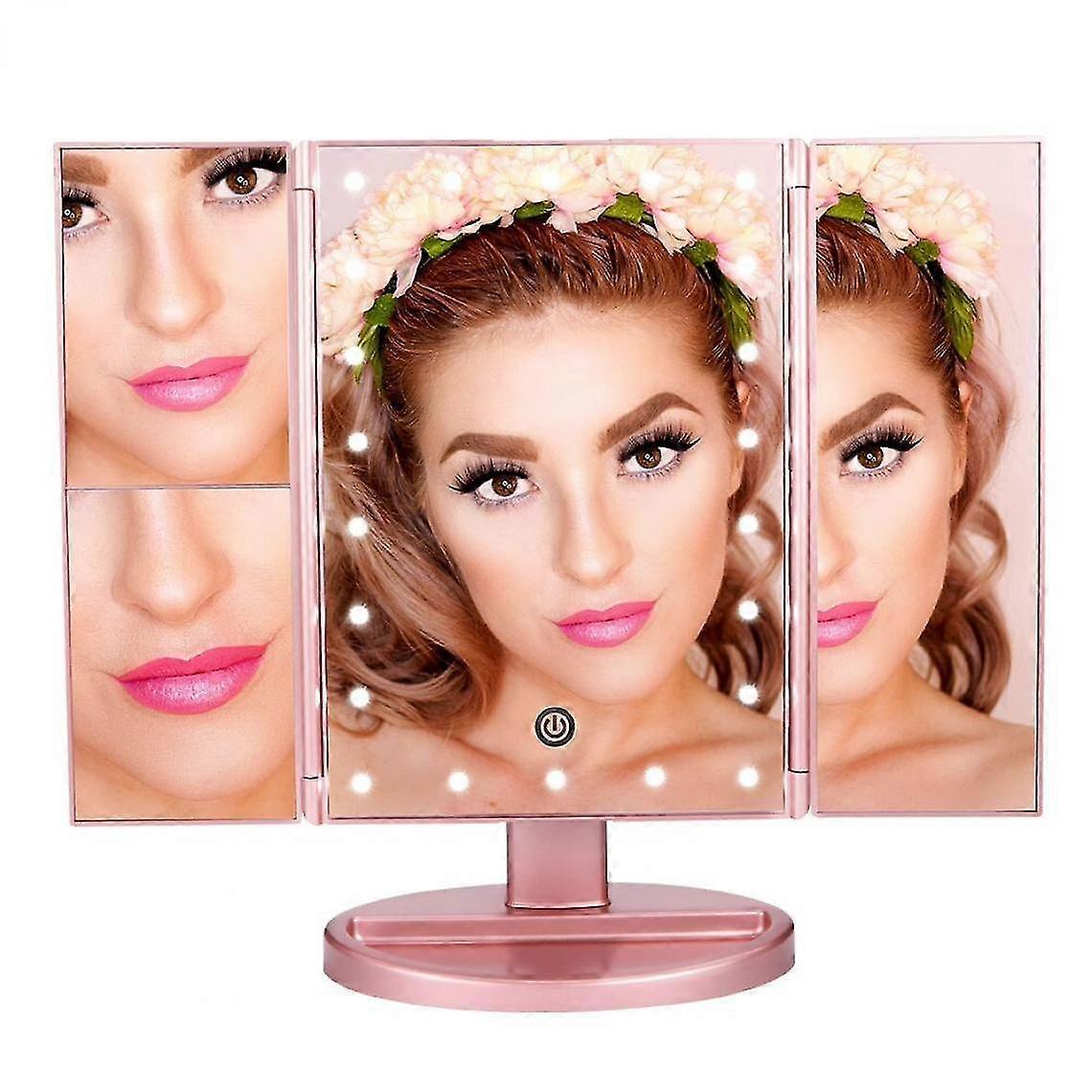 Triple Folding Usb Mirror Smart Touch Beauty Mirror 22 Led Light Mirror Makeup Mirror Beauty Mirror Desktop Mirror | 2025