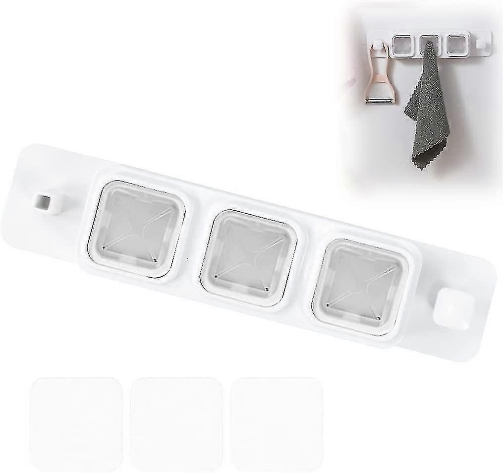 Triple Self Adhesive Kitchen Towel Holder, No Drilling Tea Towel Holder, Self Adhesive Towel Holder, Hook Clip Holder, For Bathroom, Kitchen And Home