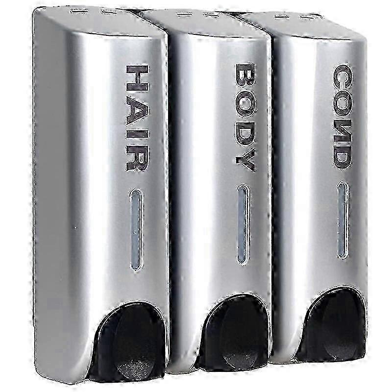 Triple 350ml Shampoo and Conditioner Dispenser Multi-Purpose Wall-Mount Washing Lotion Soap Container Heat-Resistant Large Capacity for Bathroom AcceoriesFeatures:1. ABS Material:This liquid soap dispensers is made from ABS shell, which is impact-resistant, heat-resistant, and not easily deformed, ensuring durability and longevity.2. Easy to Use and Refill:With just one click of a button, this shower bath shampoo dispenser dispenses liquid soap evenly while monitoring the remaining liquid level. Its wide opening makes it easy to refill with your choice of liquid hand soap, shampoo, lotion, body wash, mouthwash, maage oil, or other liquids.3. Easy to Install:This washing lotion soap container can be fixed on the wall using screws, saving valuable limited space by keeping your countertop clean. For customers who do not want to use screws, strong double-sided tape or three metres glue can also be used to install it.4. Multi-Purpose Dispenser:This shampoo and conditioner dispenser can hold various liquid products, including hand soap, shampoo, lotion, body wash, mouthwash, and maage oil, making it suitable for use in homes, restaurants, hotels, guesthouses, KTVs, and other places.5. Provides Convenience:This body wash dispenser provides convenience, reducing me and clutter on countertops while promoting cleanline. By being able to mount on walls, it frees up space and reduces the risk of contamination from multiple hands touching the container.Specification:Certification: NONEOrigin: Mainland ChinaType: Liquid Soap DispensersFeature: Liquid Soap DispenserLiquid Soap Dispenser Type: Hand Soap DispenserMain Material:ABSModel Number: Liquid Soap DispensersSize: 21.5 x 19.5 x 7.5cm/8.46 x 7.68 x 2.95inCapacity: 3 x 350mlColor(optional):White/Gold/Silver/BlackUsage: Suitable for installation and use in toilets, shower rooms, etc. in hotels, guesthouses, homes and other places. Can hold liquid soap, shower gel, shampoo, detergent and other liquids. Note:Due to the different monitor and light effect, the actual color of the item might be slightly different from the color showed on the pictures. Thank you!Please allow 1-2cm measuring deviation due to manual measurement. 1 x Liquid Soap Dispenser [relateproductdetail/] Note: Due to the light and screen setting difference, the item's color may be slightly different from the pictures. Please allow slight dimension difference due to different manual measurement.
