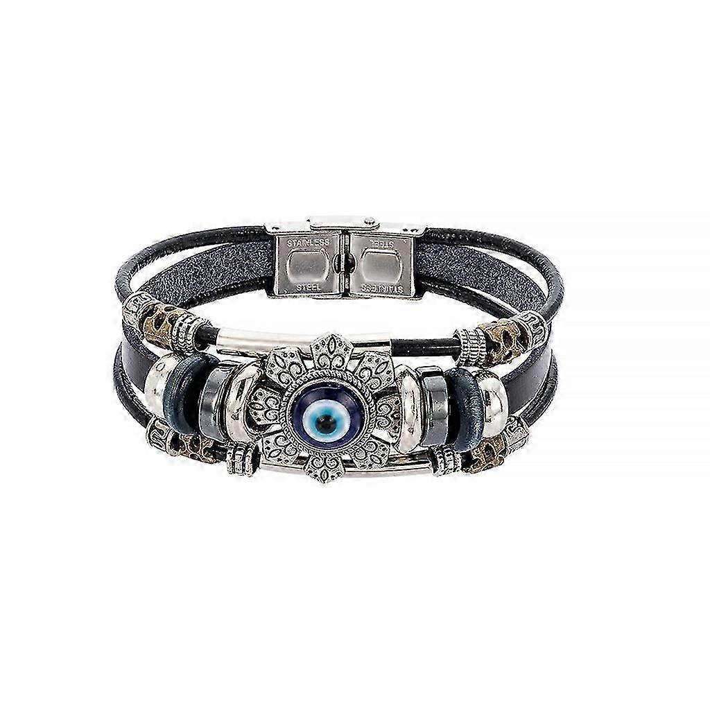 Turkish Blue Eye Alloy Accessories Bracelet Stainless Steel Pair Buckle Series Leather Bracelet Jewelry for Women Men