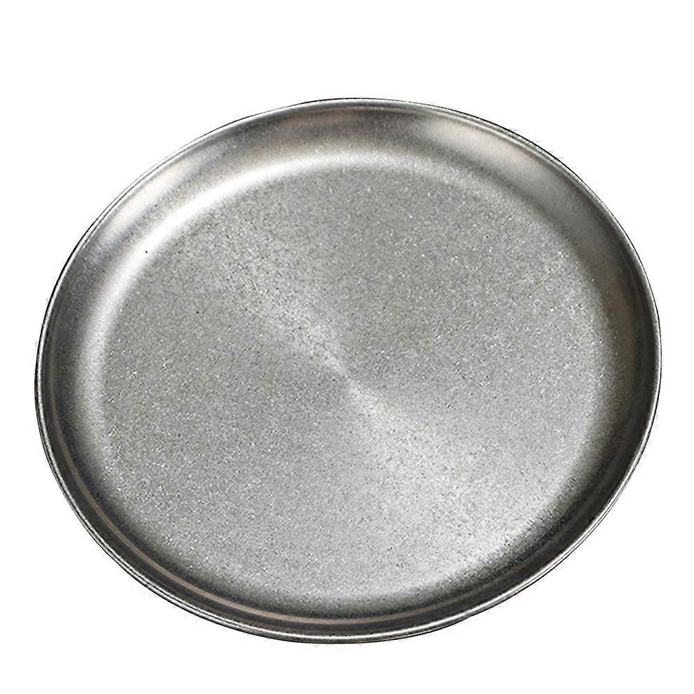 Tray Serving Food Round Plate Stainless Steel Food Tray Serving Meat 20x20x1.3cm Silver 1Pcs