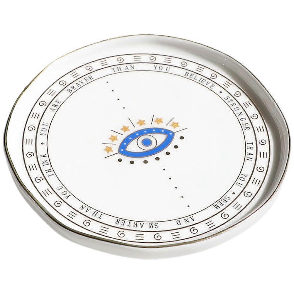 Trays Jewelry Display Plate Desktop Tray Ceramic Storage For Women Round Eye Pattern 1Pack