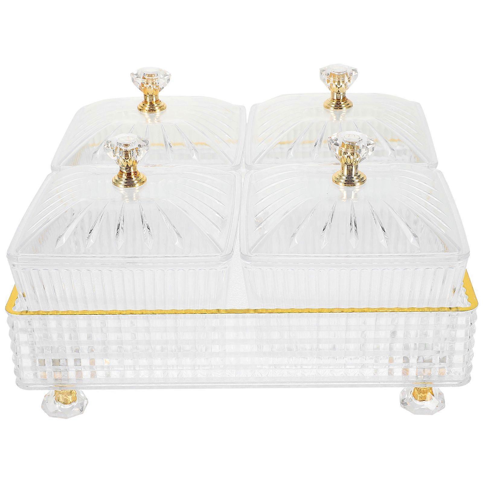 Description Adopting reliable PS materials, this snacks plate is safe, sturdy, can be used for long time. Easy to use and clean, you can rinse and dry after every use. Modern style , very nice-looking, can store candies, snack, nuts, and many other food, satisfy your requirements better. Features - Color: Transparent -Material:PS - Size: 18.50X18.50X11.00cm/7.27X7.27X4.32in -With good workmanship, this snack dish is not easy to wear or tear, very practical and durable in use. - Adopting premium materials, it has longer service time to bring you much more convenience. - Can be widely applied for serving dried fruit, candy, snack, dessert, chocolate, cookie, and more. -Simple style, a wonderful and considerate housewarming gift for your friends or family, share with them fun. -Fruit serving platter is ideal to add personality for parties or your daily family dinner table. It can be used to place nuts, candies and other small snacks to enjoy the deliciousness. Package list: 1 x tray 4 x small bowls with cover