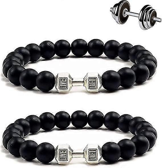 Traintough Dumbbell Bracelet, Volcanic Rock Anxiety Beaded Bracelet Natural Black Volcanic Lava Stone Set Gifts For Men Women