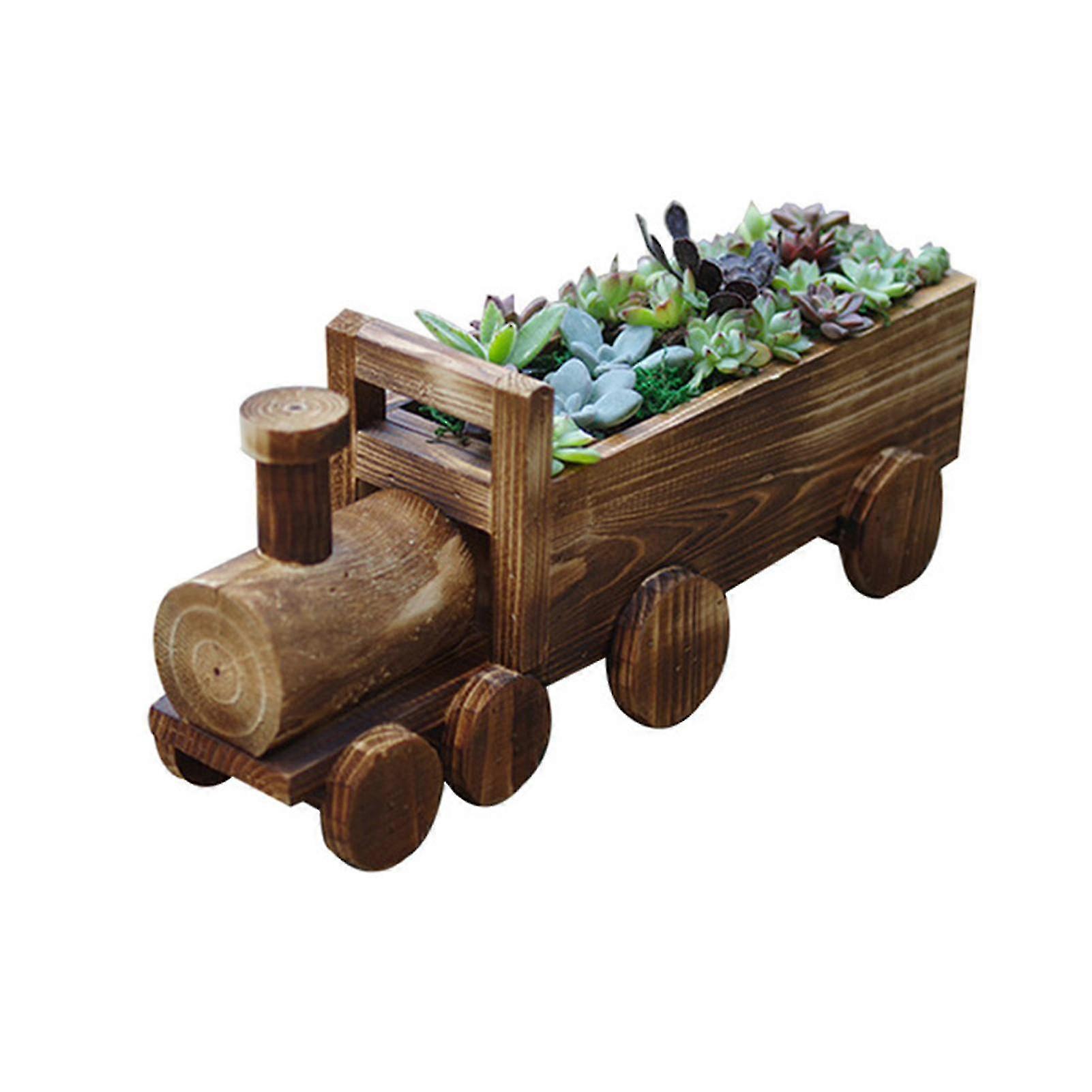 Train Wooden Flower Pot Mini Decorative Art Storage Case Plant Pot Home Ornament for Bonsai Landscape Garden New