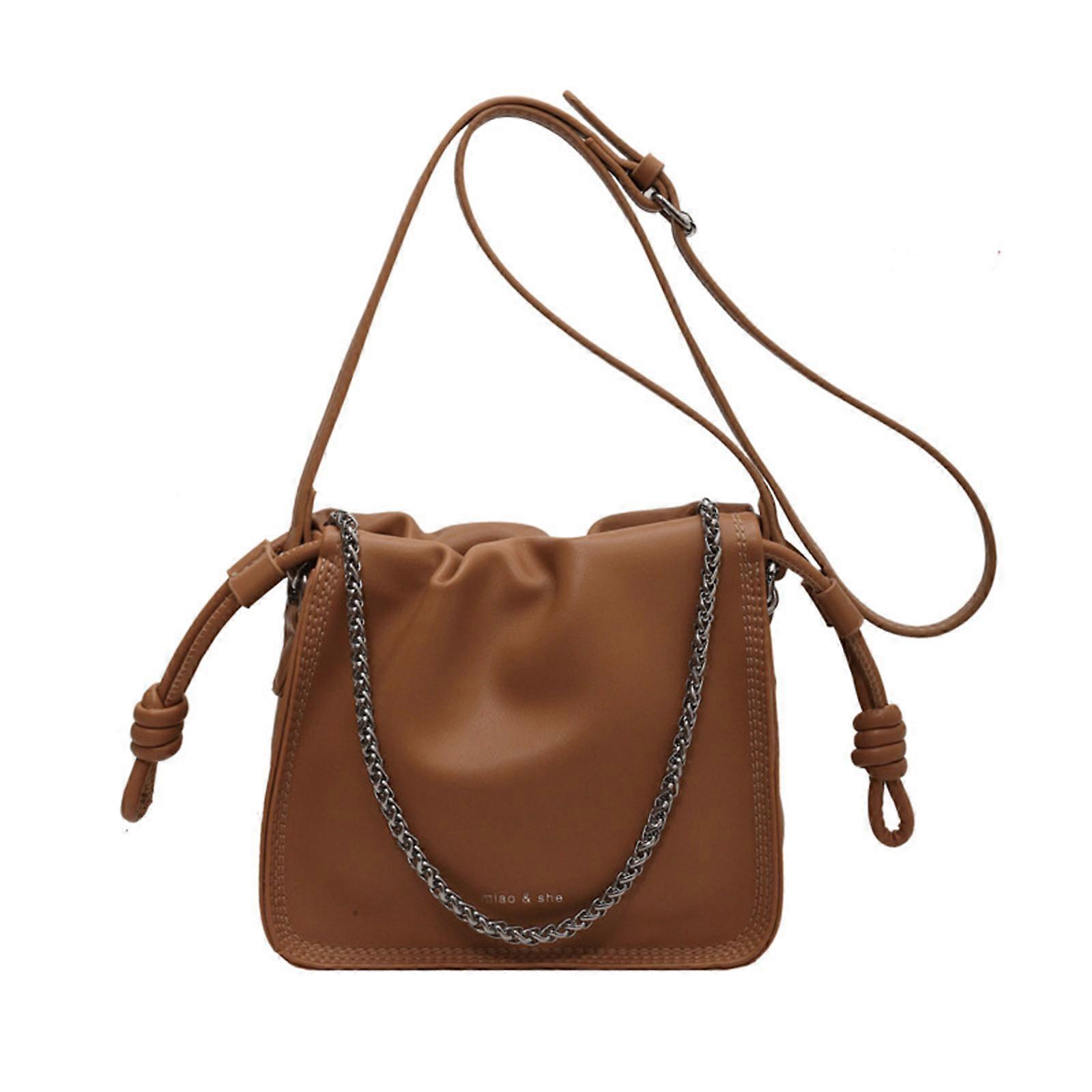 Trendy & Convenient Crossbody Bag with Chain Decor PU Shoulder Bag Square Bag Spacious Enough for All Your Necessities brown