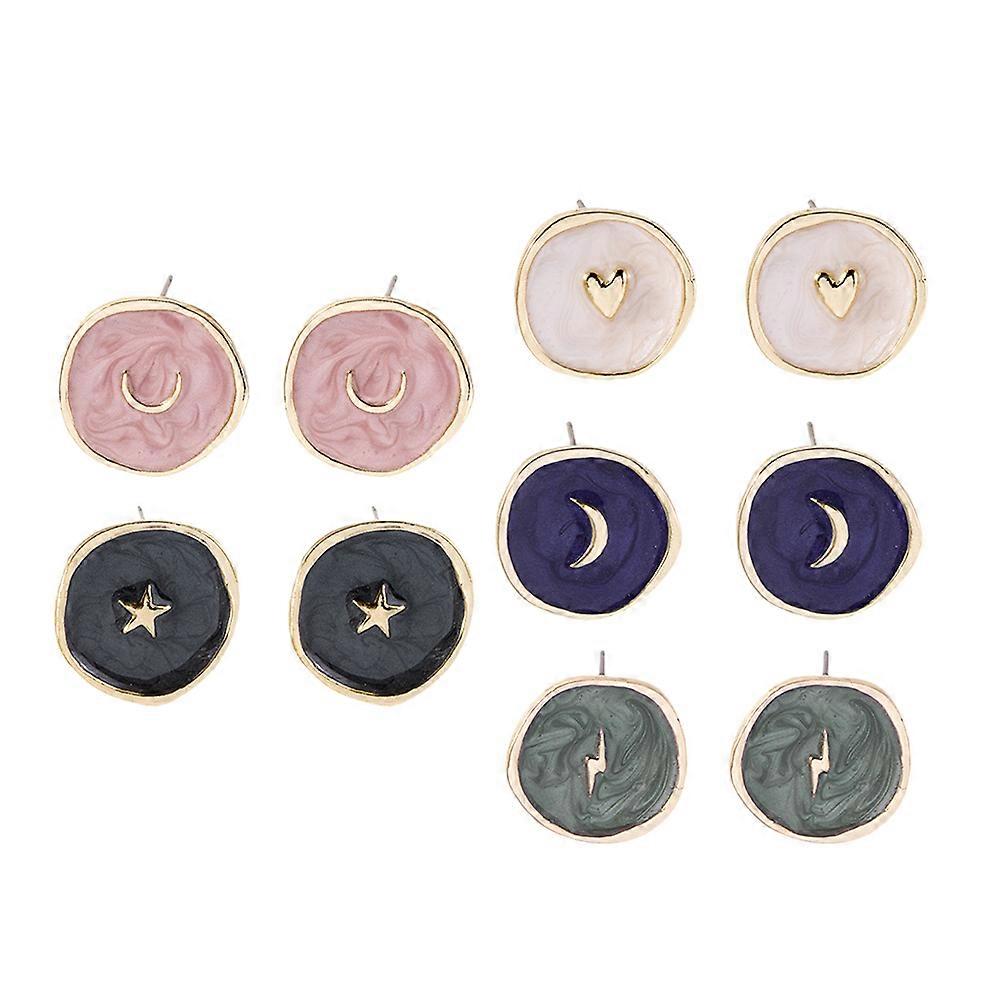 Trendy Earrings Heart Shaped Studs Jewelry for Women Girls 5Pairs White Blue Green
