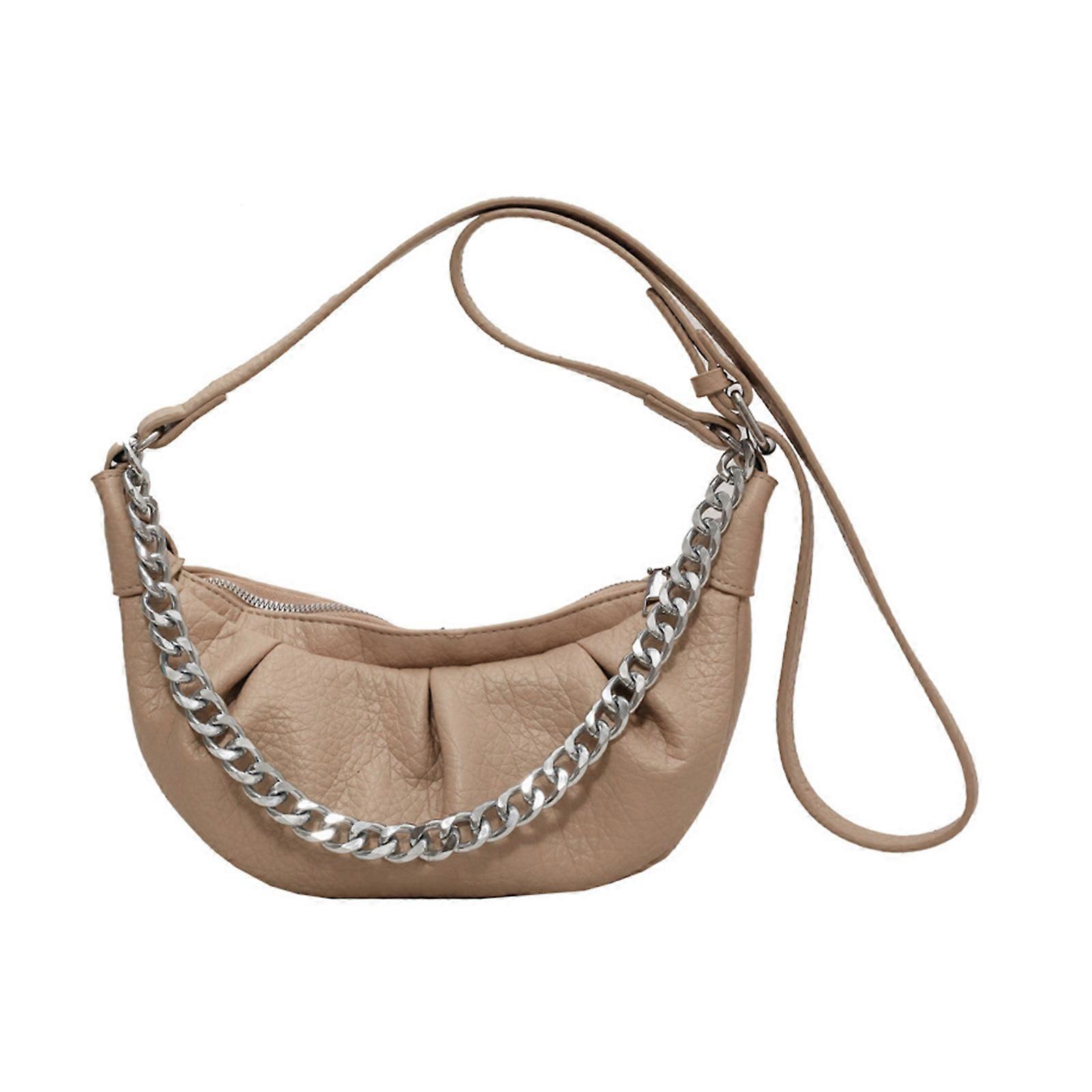 Trendy Moon Shape Black Shoulder Bag with Chain Strap Fashionable PU Crossbody Bag for Women 2023 Khaki