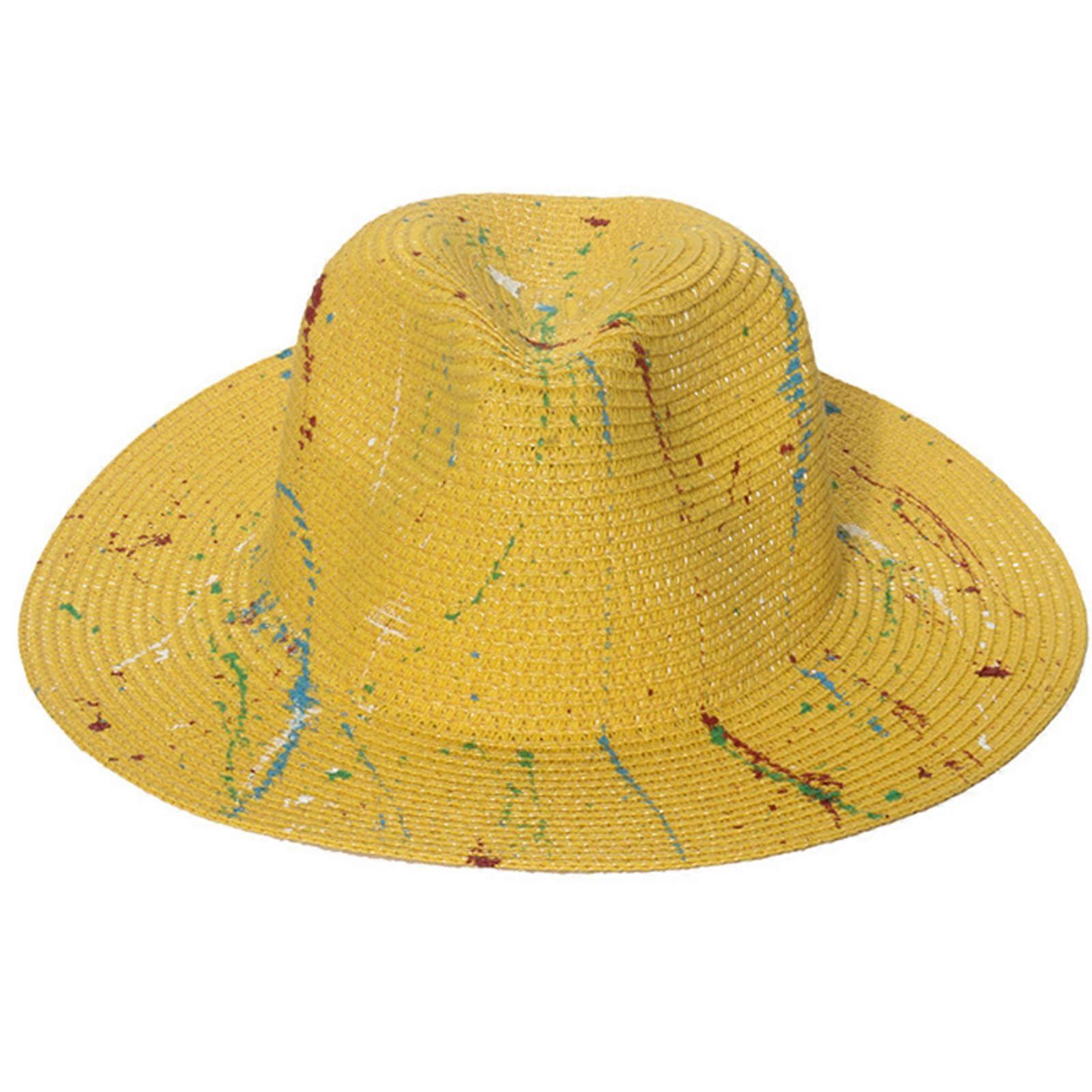 Trendy Unisex Fashion Summer Casual Fashion Beach for Sun Straw Panama Jazz Hat Cowboy Breathable Hat Sunproof Straw Cap Yellow