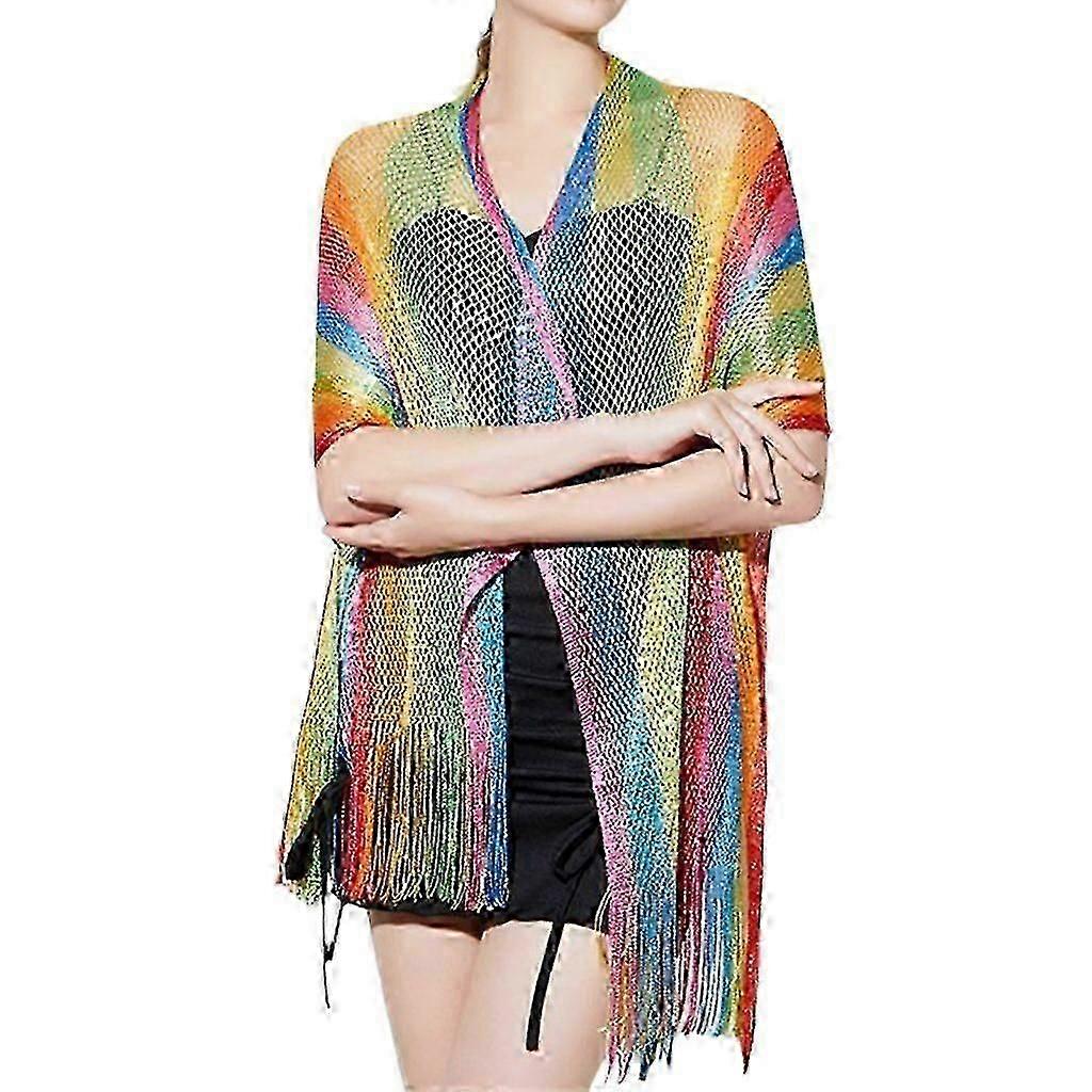 Trendy Rainbow Striped Scarf Shawl for Casual Wear