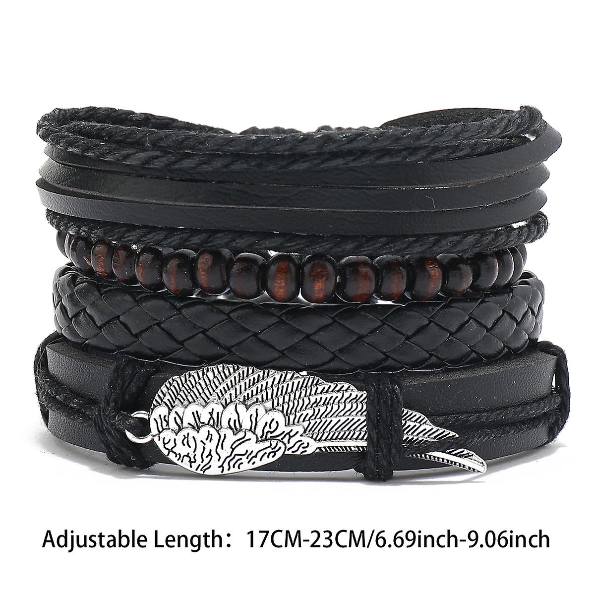 Trendy Leather Bracelet Men Pu Leather Products Widened Woven Bracelet Wooden Bead Wing Feather Bracelet Drawstring Bracelet