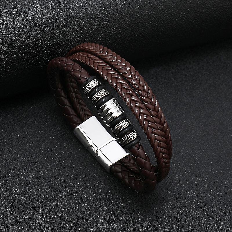Trendy Leather Bracelets Men Stainless Steel Multilayer Braided Rope Bracelets For Male Bracelets Jewelry Pulsera Hombre