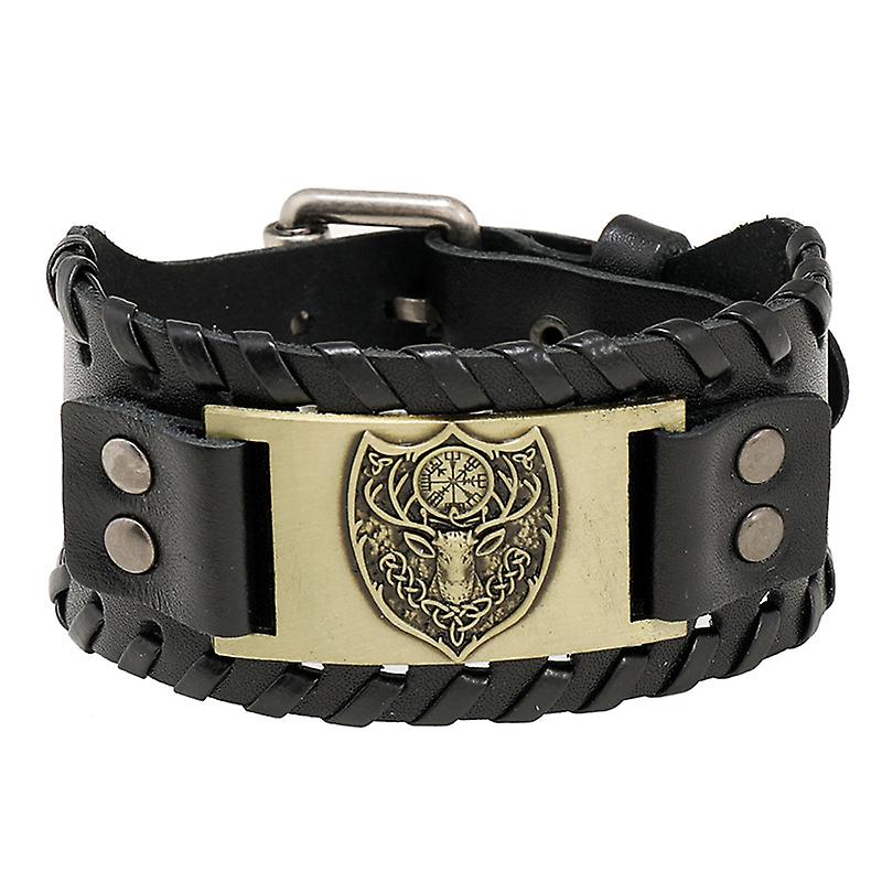 Trendy Retro Nordic Elk Wide Edition Leather Braid Bracelet Charm Viking Compass Man Bracelet Hip Hop Punk Jewelry Accessories