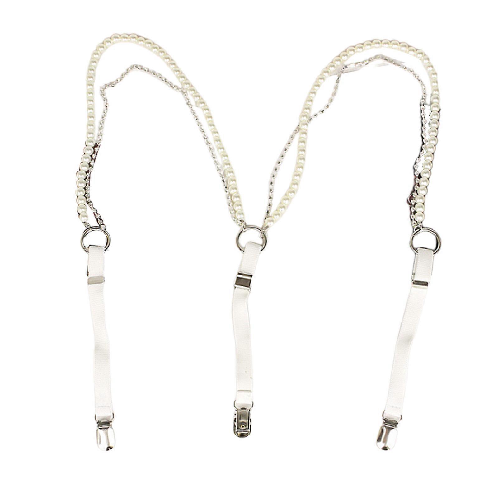 Trendy Men Braces Clip-on Glistening Chain Vintage Costume Metal Clips Shimmering Rhinestones Chain Photo Props White
