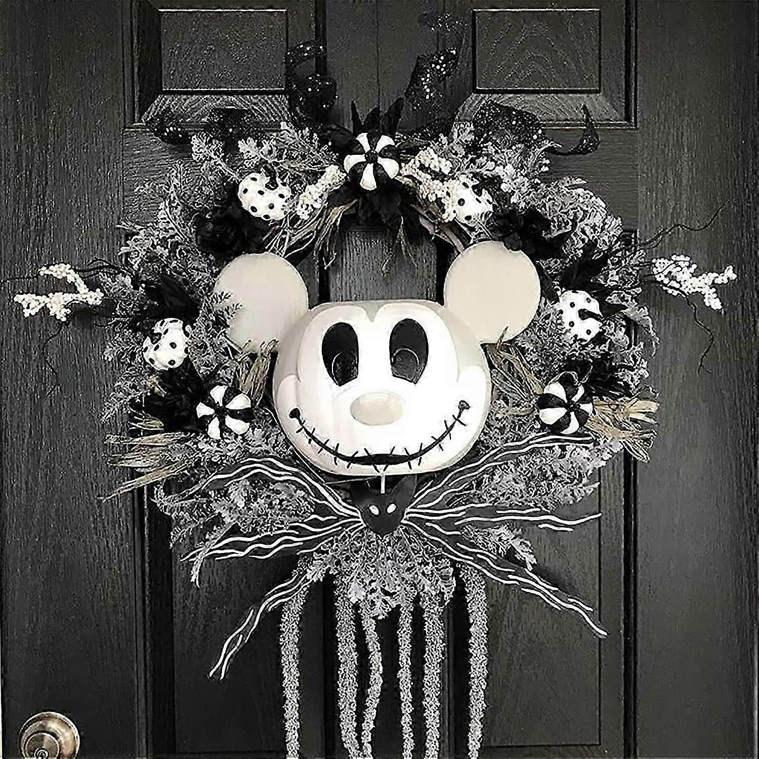 Nightmare Before Christmas Mickey Mouse Pumpkin Wreath, Halloween Gray Horror Decorations, Autumns Harvest Holiday Decor Decorations