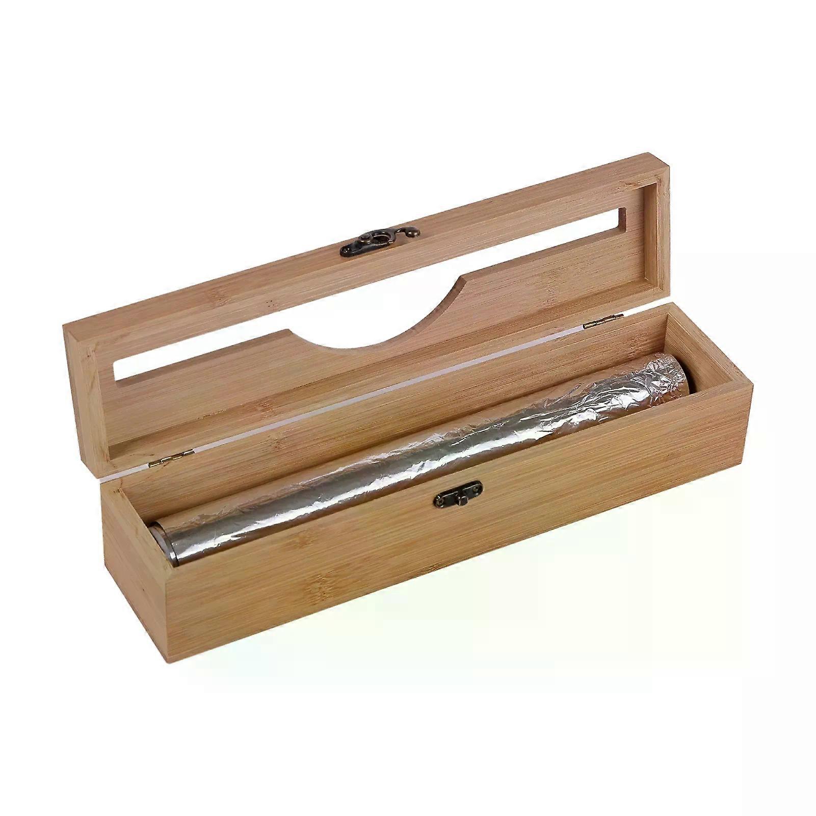 Bamboo Dispenser with Knife Aluminum Foil & Wax Paper Dispenser for Kitchen Drawer Roll Organizer Cling Film