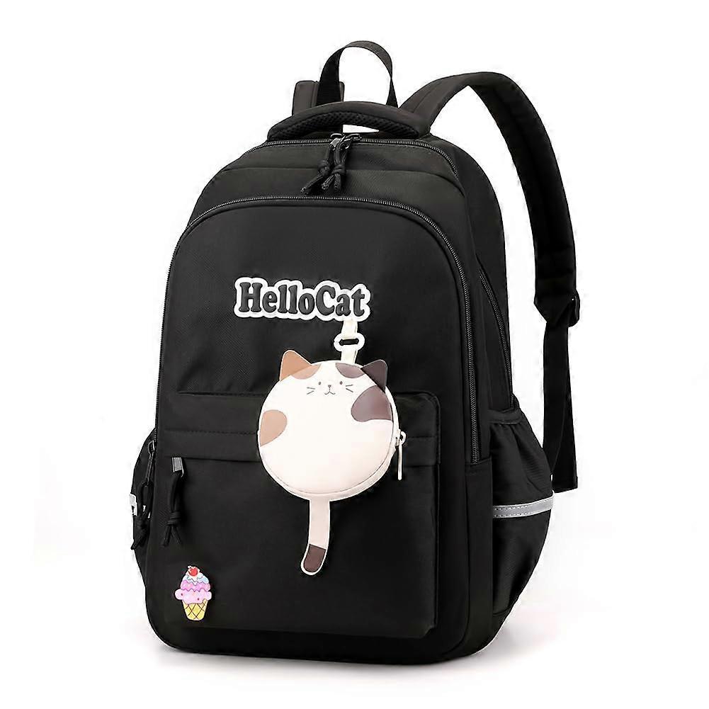 Nylon Women Handbags Adjustable Shoulder Straps Cartoon MultiPocket Campus Accessories, black