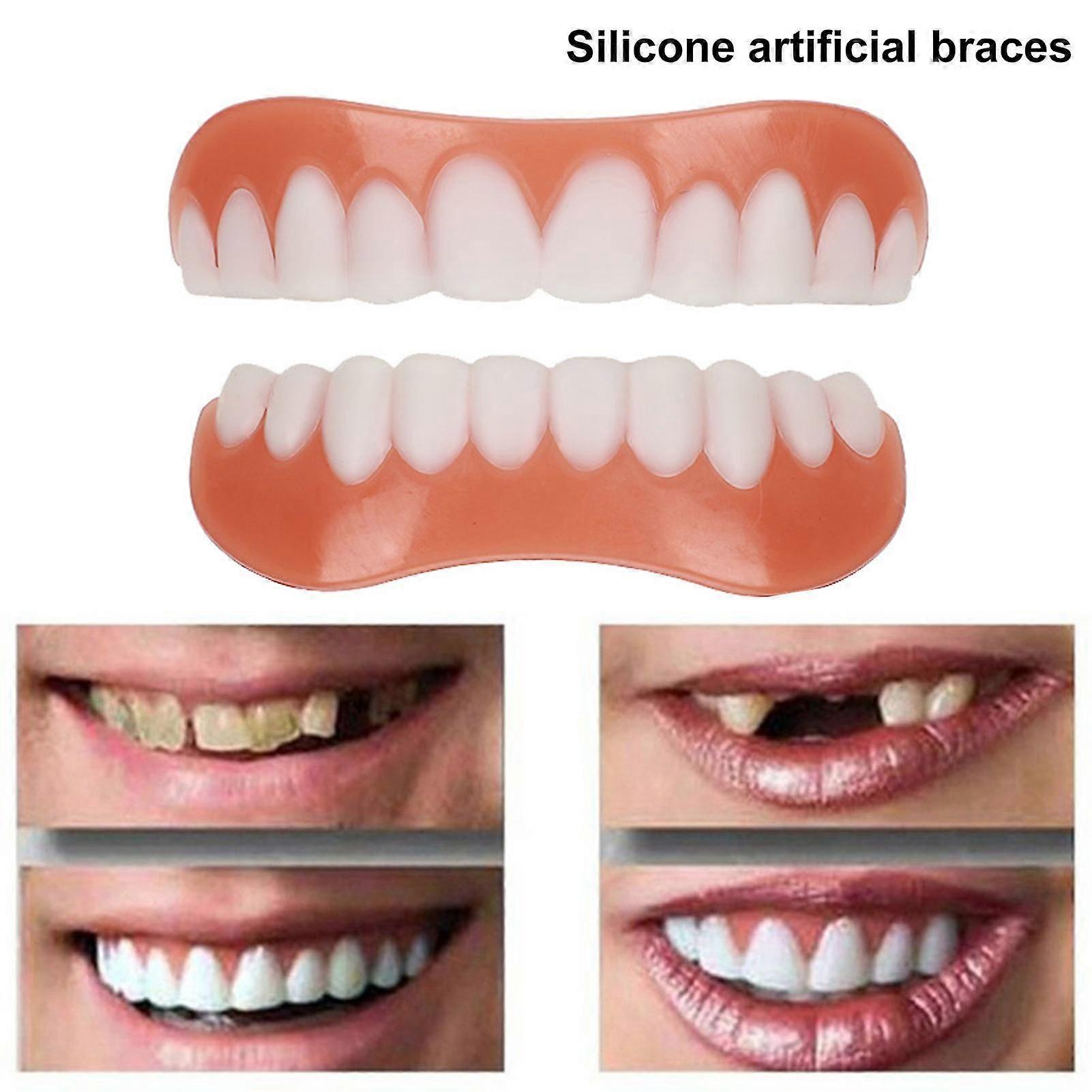 Description: It's this temporary braces feature that helps you hide scratches, stains and breakages on your teeth so you can smile with confidence in any situation. These temporary braces come in a natural color and shape, are comfortable to wear, and make it hard to tell if you're wearing braces when you smile. It is made of silicone and PP and can be used for a long time. Available in two styles: top and bottom for ballrooms, parties, dates and families. Product Name: Dentures Material: Silicone, PP Features: Multipurpose, Smooth Surface, Natural Color Remarks: Due to different light and screen settings, the product color may vary slightly from the picture. Please allow for slight size differences due to manual measurements. Package includes: 1 x Dentures Delivery Quantity: 1
