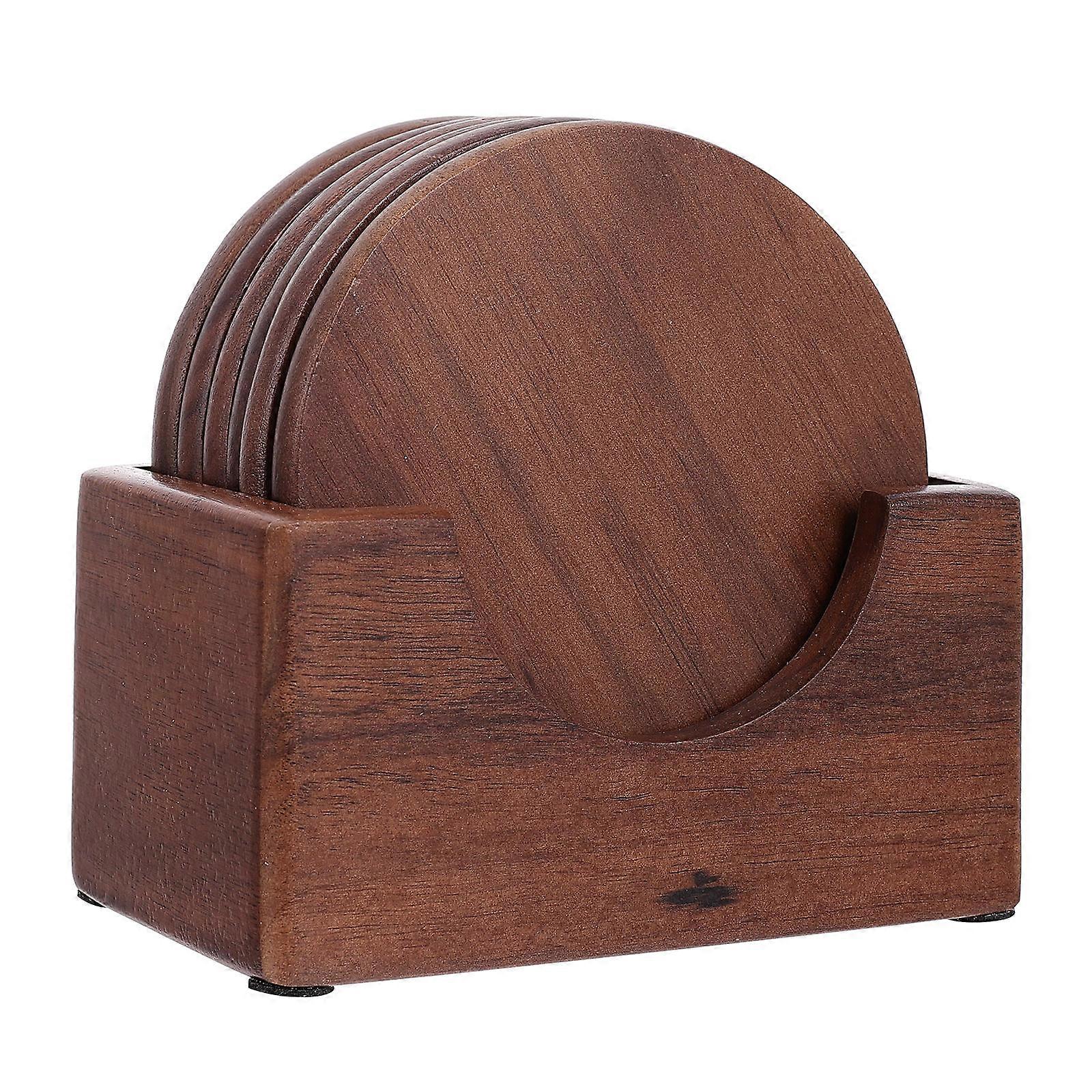This is a simple item that has clearly been crafted , pragmatism and the customer in mind. With it, you can safely put the cup on your table of various materials. Although it is small, its powerful role cannot be ignored. Features - Color: Coffee - Material: Wood - Size: 9.00X9.00X0.50cm/3.54X3.54X0.20inch. - The bottom of each coaster is polished smoothly to that your table will not be scratched. - The round coaster will protect your dining table, coffee table and countertop from unnecessary damage caused by water. - This coaster can remove the condensation water left by tea cups and coffee cups on the table. - You can wipe off dirt with a damp cloth. - The backrest of the drink coaster adopts a unique dense non-slip design, which has greater traction. Package list: 6 x coasters 1 x storage box