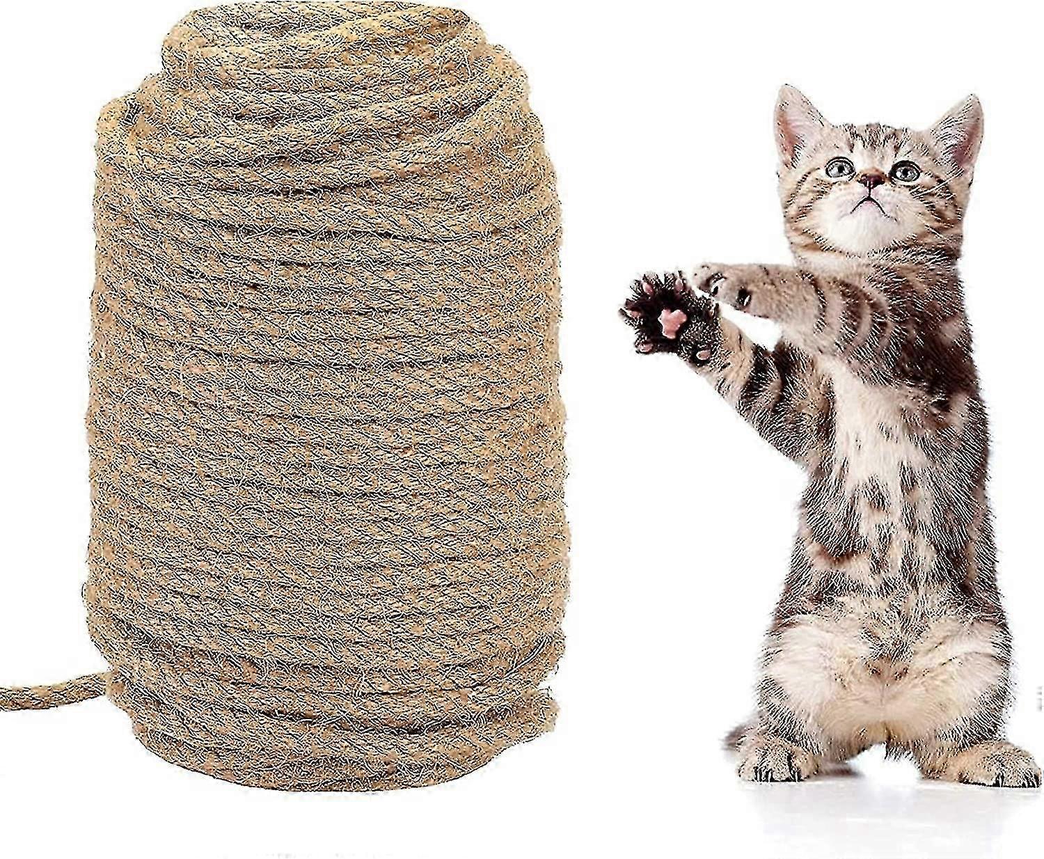Natural Sisal Rope 50m, Cat Scratching Post, 6mm Thickness, Claw Grinding Toy, Cat Protection
