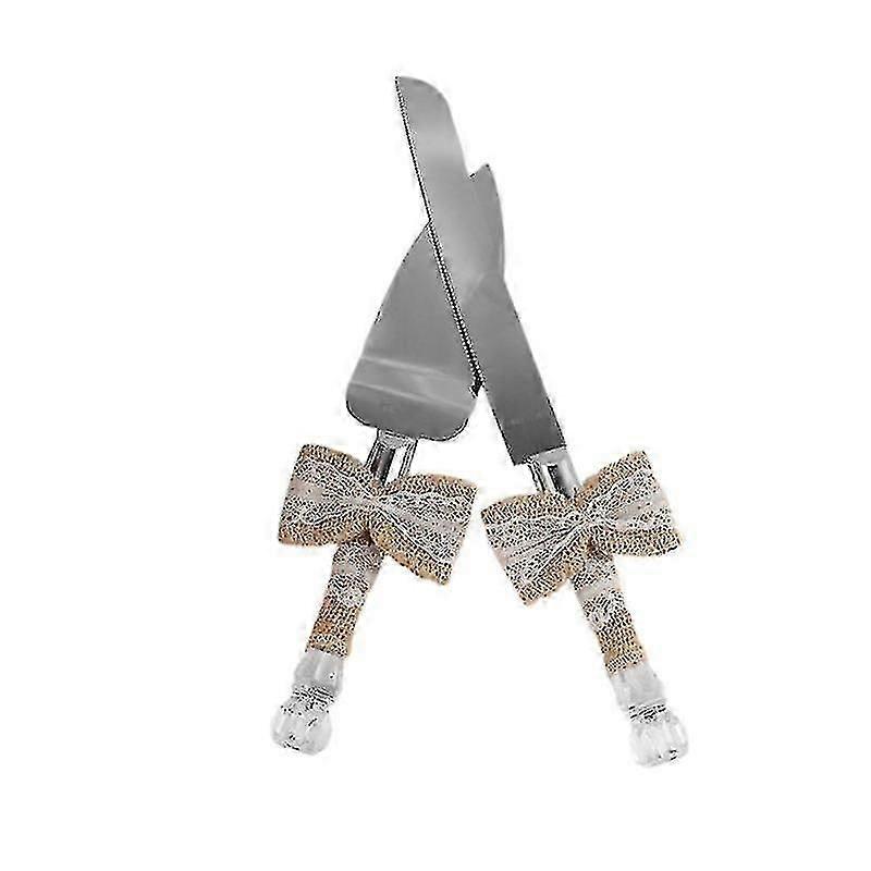 Natural Lace Bow Cake Cutting Set, Wedding Cake Shovel Supplies For Birthday Parties And Weddings