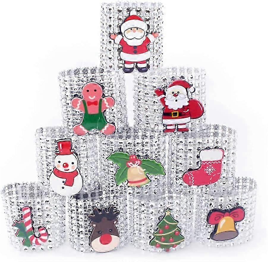 Napkin Rings, 10 Pieces Rhinestone Christmas Napkin Ring Holders Silver/Red Diamond Napkin Rings Rings for Christmas Table Decorations (Silver)