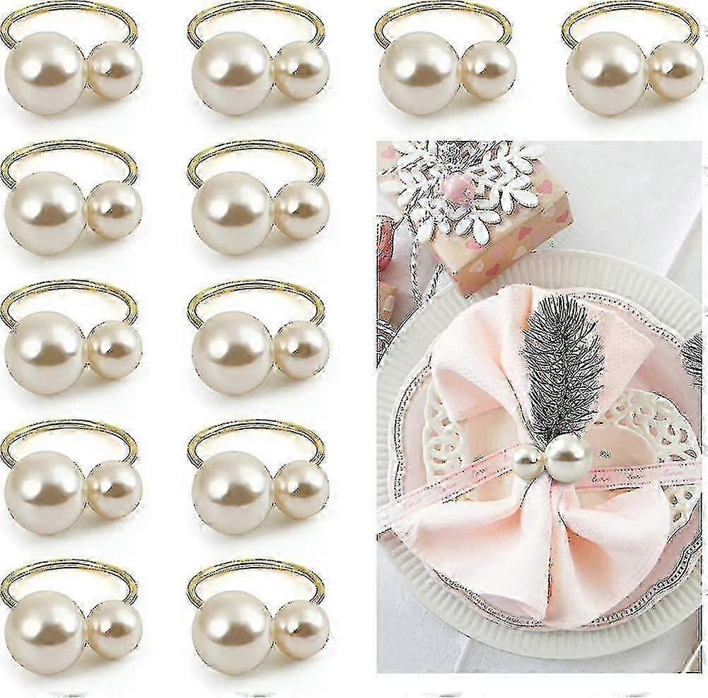 Napkin Rings, Set Of 12 Pearl Napkin Rings, Gold Napkin Ring Holders