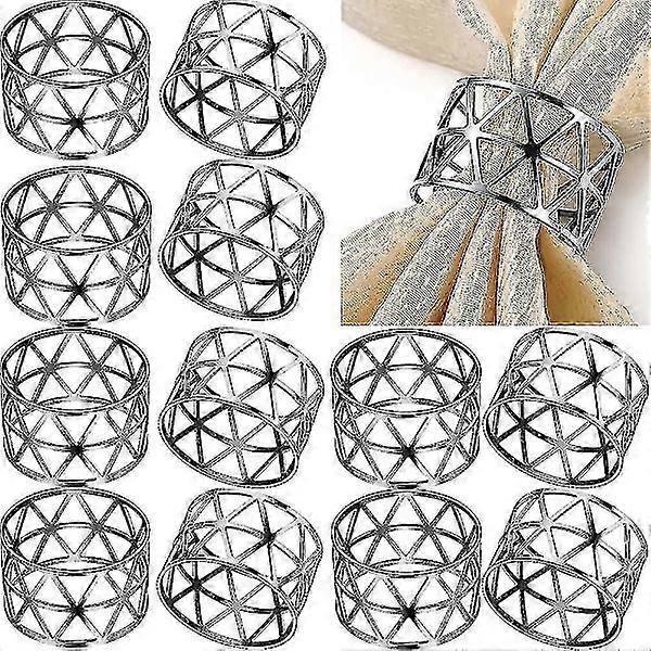 Napkin Rings, 12 Pieces Hollow Napkin Ring Holders Napkin Ring Silver