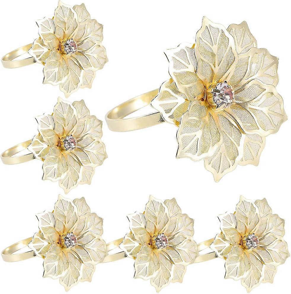 Napkin Rings, 6 Pieces Napkin Rings, Table Napkin Holder Metal Openwork Flower Pattern Decorative Ring, Napkin Rings For Hotel, Restaurant, Wedding Ba