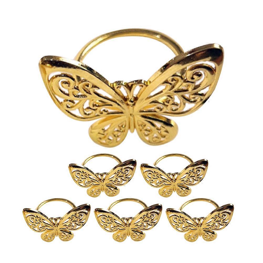 Napkin Rings Butterfly Shape Table Decor Family Reunions 6Pcs Golden Zinc Alloy Fixing