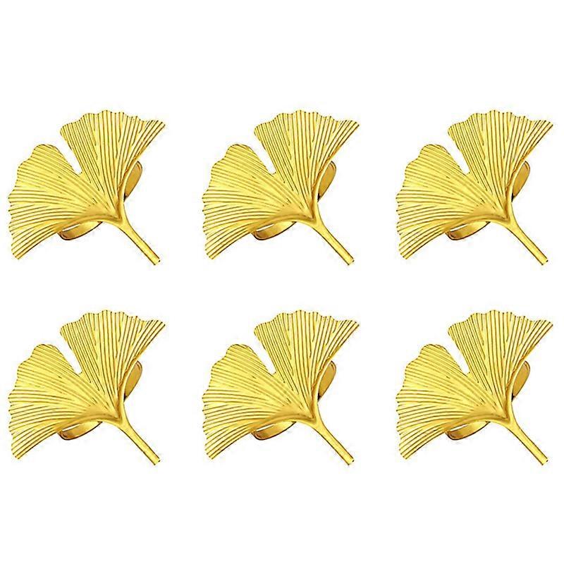 Napkin Rings Set of 6,Ginkgo Leaf Napkin Rings Wedding Gold Buckle