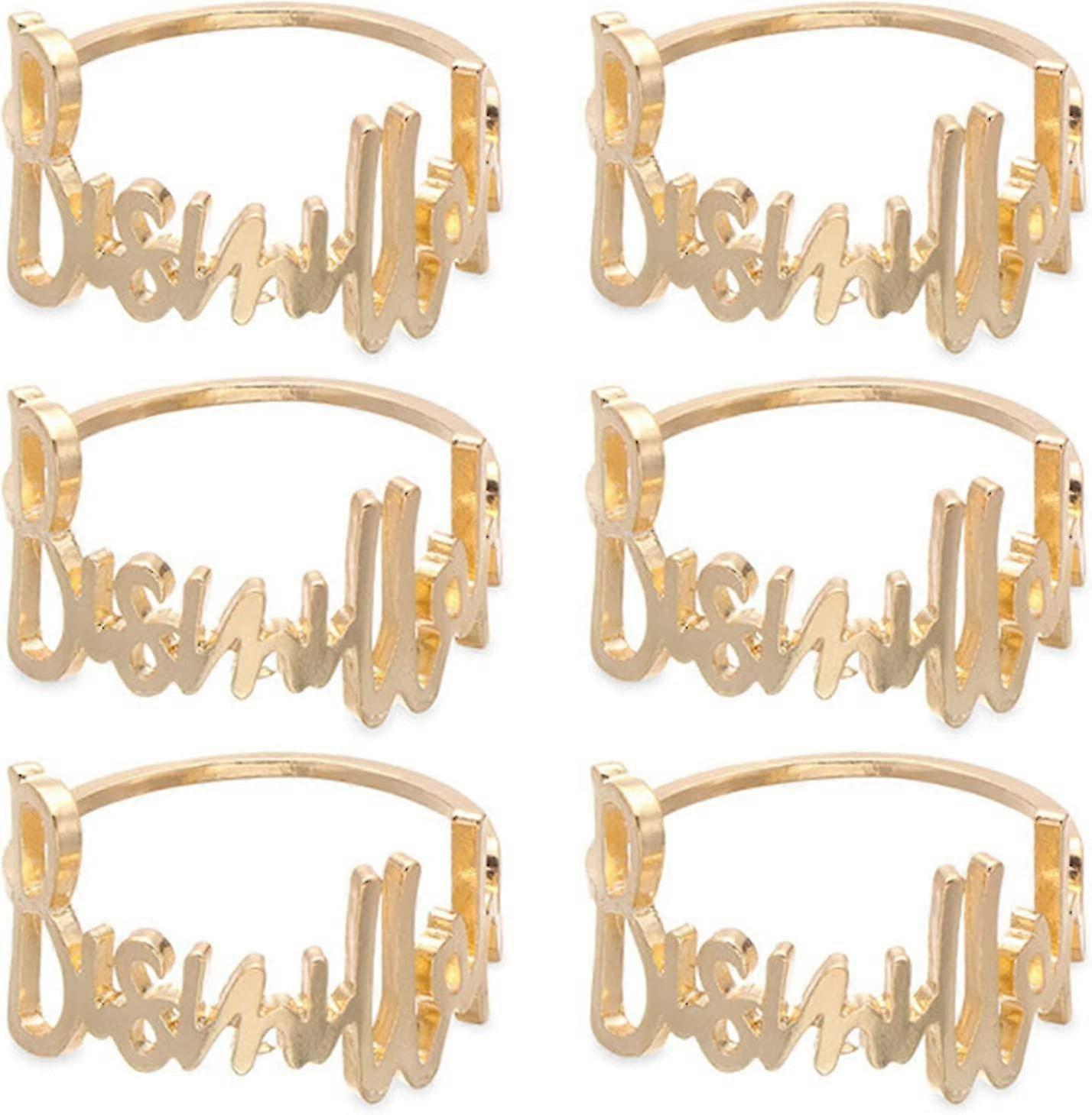 Napkin Rings- 6 Pcs Bismillah Letter Metal Napkin Ring Set Alphabet Napkin Buckles Holder Table Decor For Wedding, Party, Ramadan, Banquet (gold), One