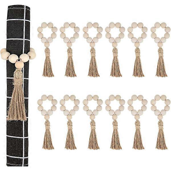 12 napkin rings, handmade farmhouse wooden bead napkin ring, yellow.
