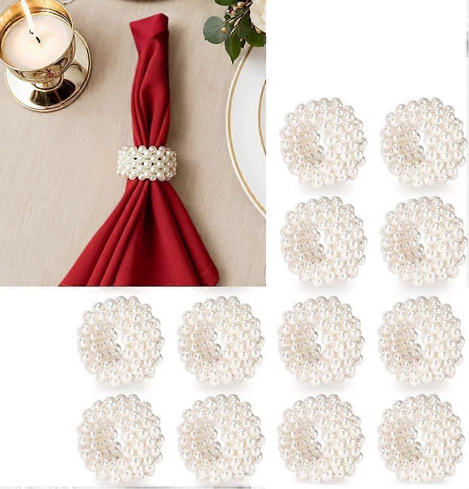 Napkin Ring 12-Piece Set, White Pearl Wedding Napkin Buckle Table Decoration