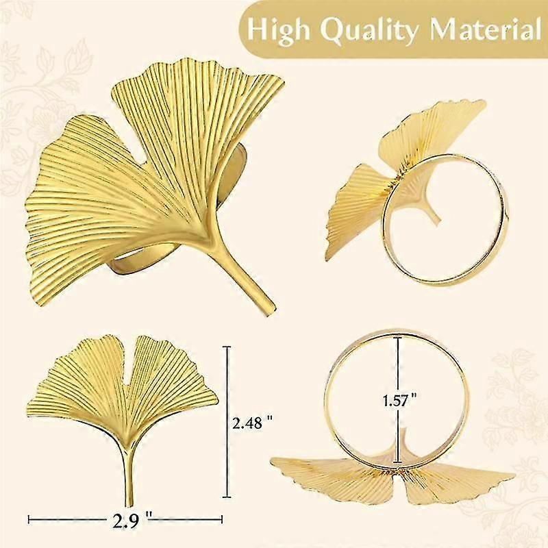 Napkin Rings 6,Ginkgo Leaf Napkin Rings Wedding Gold Napkin Buckle for Thanksgiving Table Decoratio