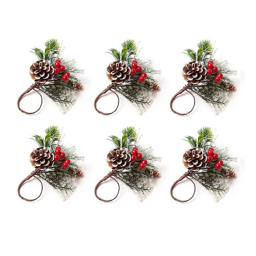 Napkin Rings 6 Pine Needle Berries Christmas Thanksgiving Holiday Rustic Farmhouse Napkin Rings Hol