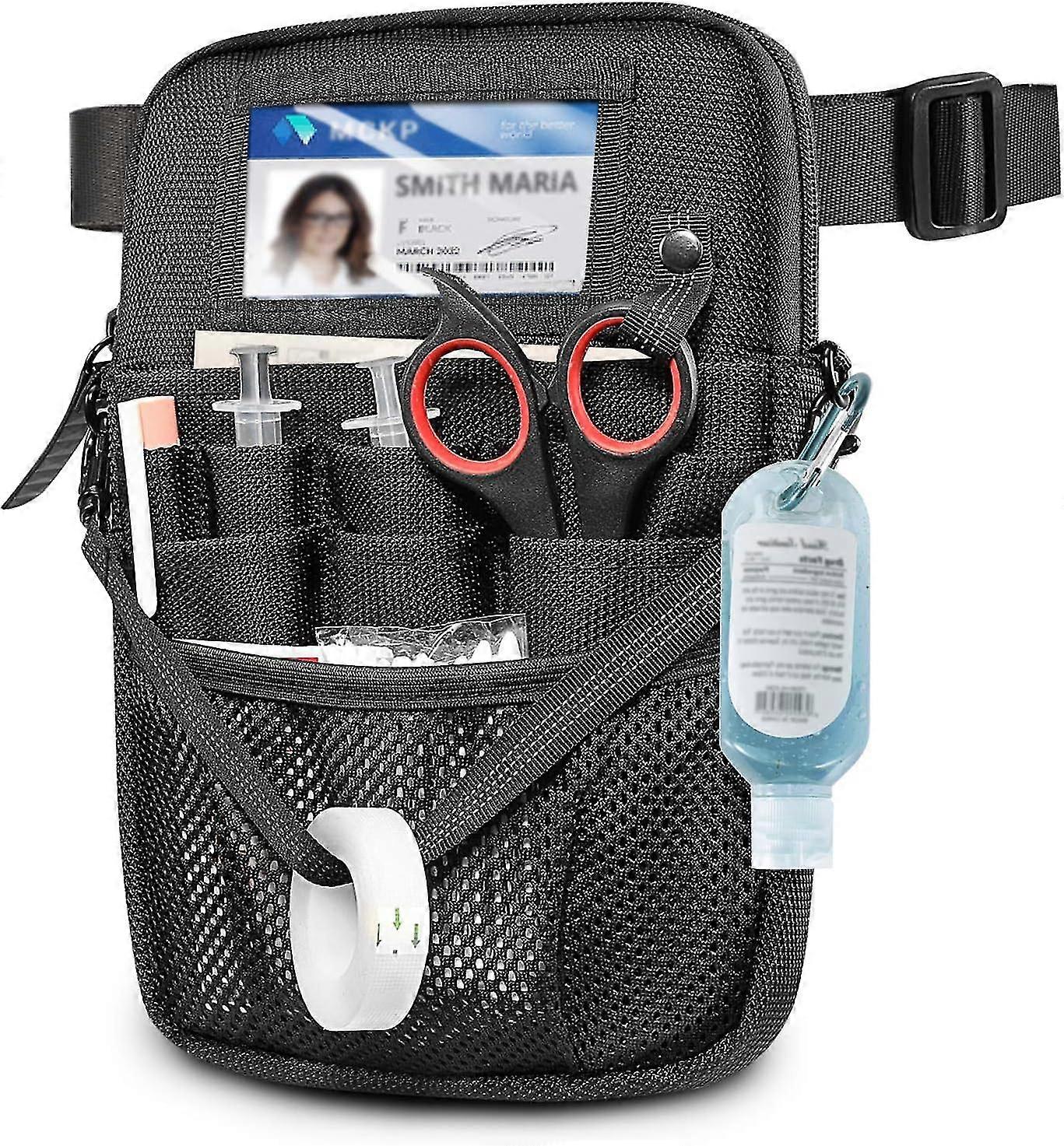 [Water-resistant and durable] - Made of tear-resistant yet lightweight material for everyday use. This nurse fanny pack is durable, water resistant with multiple compartments and comes with a premium zipper and easy quick release sturdy buckle. [3 removable straps] - The nurse waist bag includes 1 adjustable and detachable waist strap from 24" (min) to 45" (max), 1 adjustable and detachable shoulder strap from 25" (min) to 49" (max), 1 removable ribbon strap 10 .5". It can be used as a belt bag, crossbody bag, shoulder bag or hang on pants with the carabiner. [Well organized] - Perfect for the busy healthcare professional. This nurse hip medical accessory bag has multiple pockets that can hold pens, markers, thermometer and penlights. And this specially designed nurse pocket bag can easily hold an iPad mini, pager, pair of medical gloves, stethoscope, calculator, wipes, hand sanitizer, etc. [Personality and Practical] - This ribbon holder with reflective strip makes you notice at night. Front ID window with clear cover provides visibility and protection, quick access and no need to take out your ID card. Back pocket with side opening, convenient to store your items and easy to access. [Great Gift Idea] - This medical nurse apron is perfect for CNA, NP, PA, paramedics, doctors, medical assistants, veterinarians, managers, pharmacists, medical assistants, dentists and more! This is the perfect gift you can give to yourself or your friends for Christmas, Nurses Week or any other occasion. Note: Bag only, accessories not included! Large capacity The medical fanny pack keeps everything you need where you can easily locate it. Water resistant Made from water and tear resistant material yet lightweight for everyday use. Reflective strip holder Tape holder with reflective strip makes you visible at night. Instruction care Wipe your fanny pack with a damp cloth (cleaning and disinfection are important parts of infection prevention!)SITHON Nurse Fanny Pack Large capacity The medical fanny pack keeps everything you need where you can easily locate it. Water resistant< /p> Made from water and tear resistant material yet lightweight for everyday use. Reflective strip backing Ribbon holder with reflective strip makes you visible at night. Care Instruction Wipe your fanny pack with a damp cloth (cleaning and disinfection are important parts of infection prevention!) Size: 22.8 x 3.5 x 17.7 cm. Quantity delivered: 1 piece Welcometomeet
