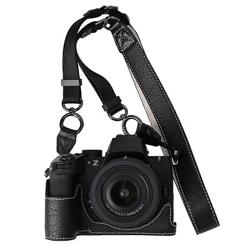 For Nikon Z 50 II Camera Half Case Litchi Texture Battery Opening PU Leather Cover with Shoulder Str