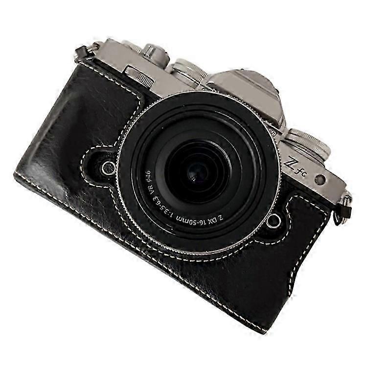 Compatible For Nikon Z Fc Buffalo Texture PU Leather Bottom Case Half Body Camera Cover with Battery Opening