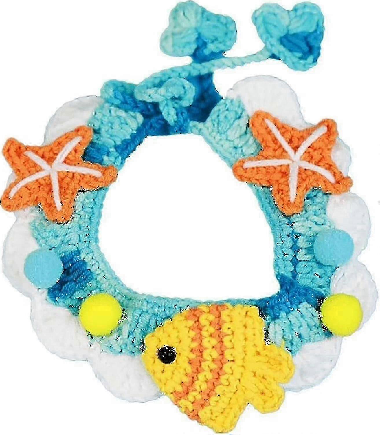 Knitted Cat Bib, Practical Outdoor Hand-woven, Knitted Dog Collar (sea L, 30cm/11.8in)