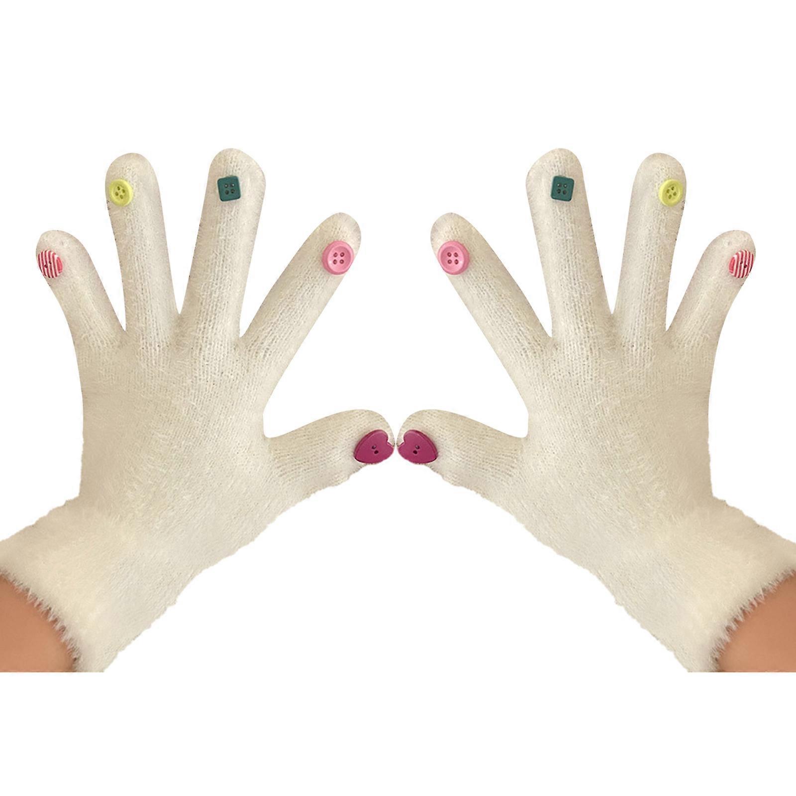 Knitted Touchable Screen Gloves Winter Full Finger Mittens Stretchy Warm Two Finger Exposed Gloves for Girls Teens White