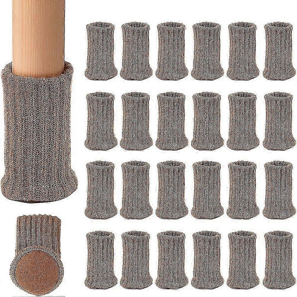 Knitted Chair Socks 24-Pack, Elastic Furniture Protectors for Wood Floors, Light Brown