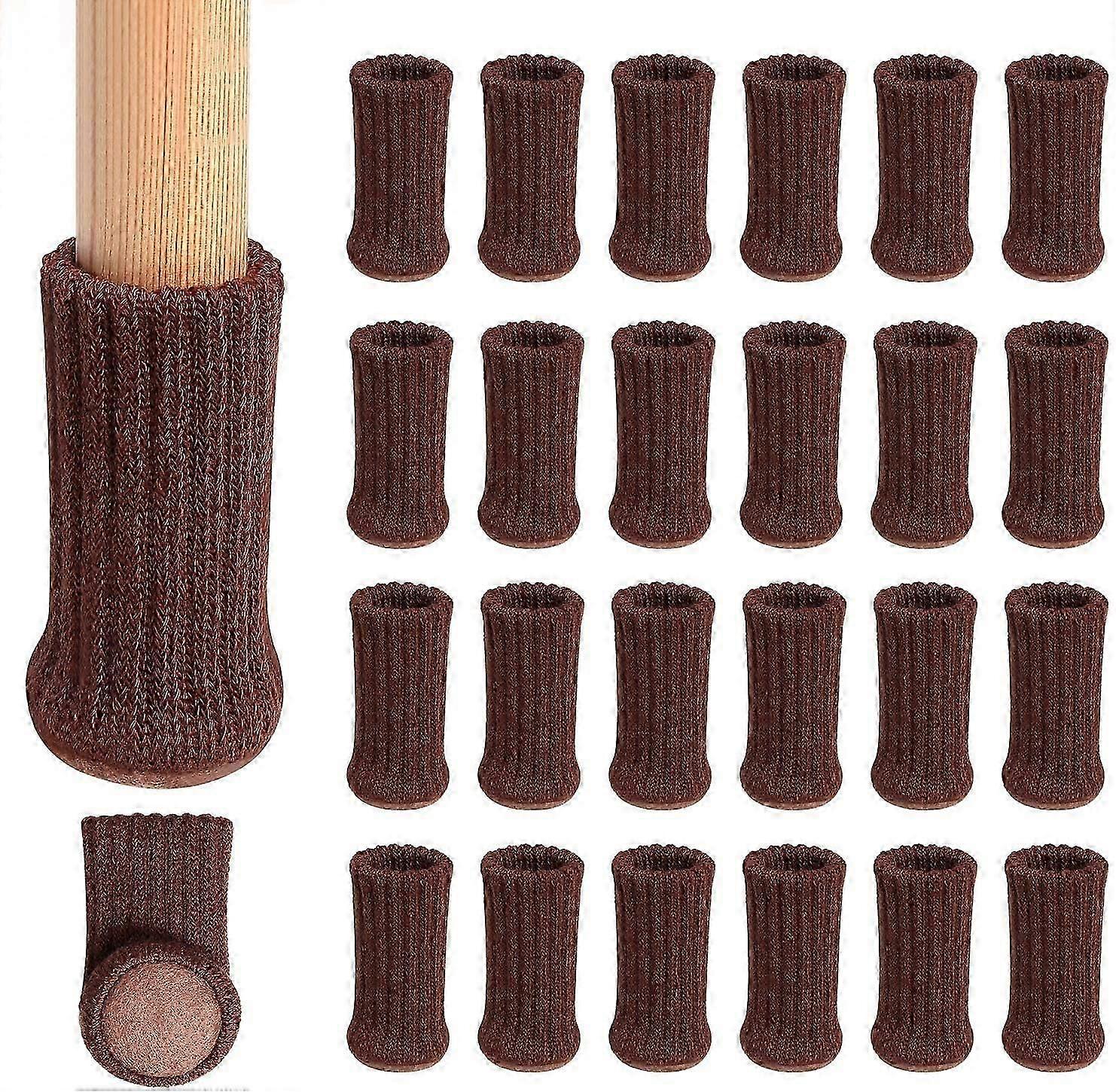 Knitted Table Chair Leg Socks Elastic Chair Furniture Socks Sets Wood Floor Protectors, Brown, 24 Pack (Dark Brown)