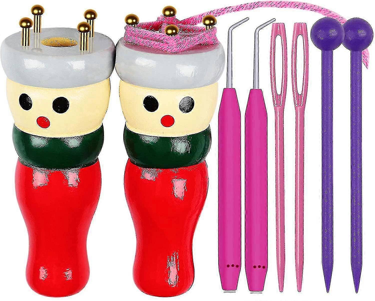 Knitting Dolly Set, French Knitter 2 Pack, Wooden Spool Knitting Doll For Making Bracelets, Necklaces, Decorations, Craft Starter Kit