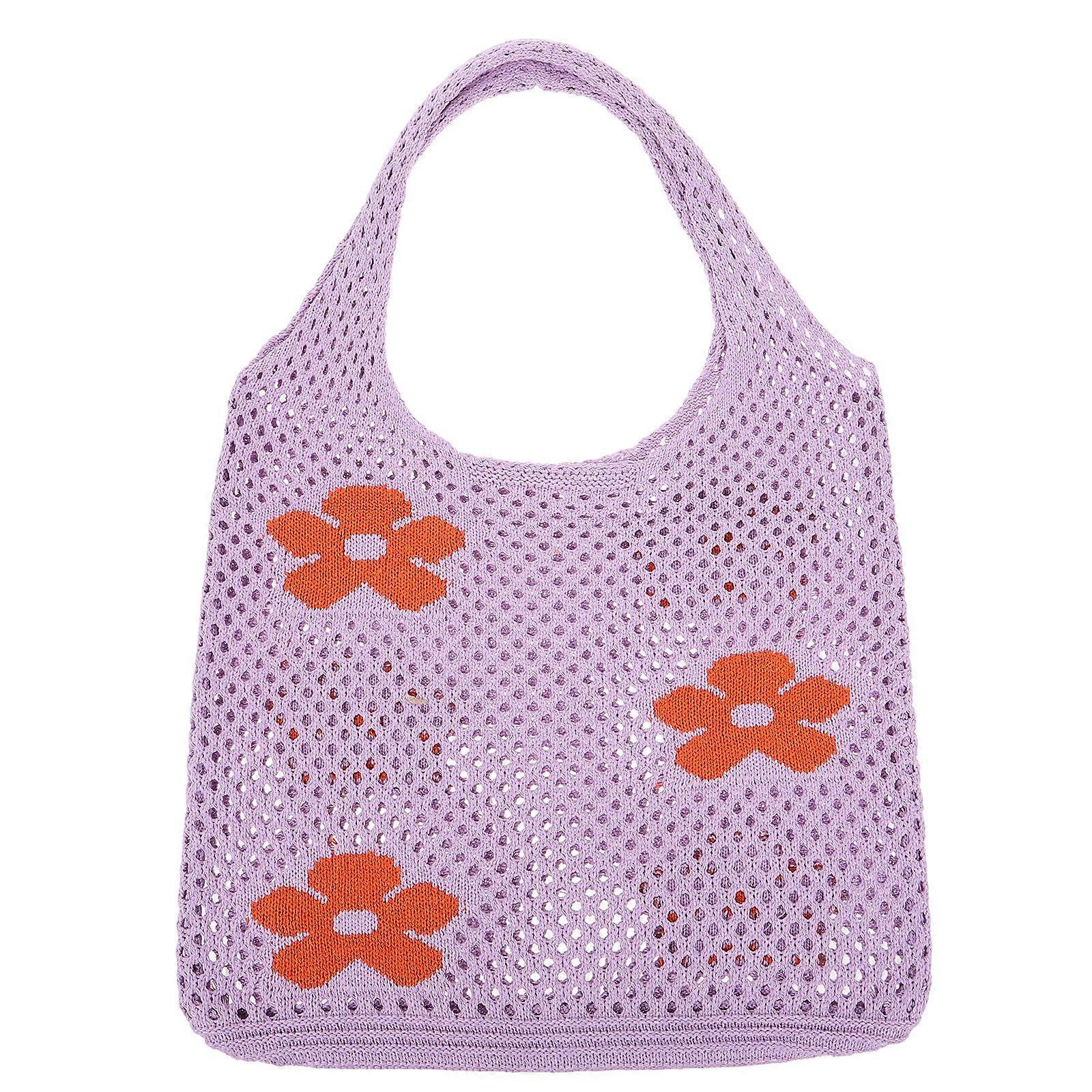 Knit Handbags Crochet Flower Shoulder Bag Daily Use Travel Spacious Capacity Breathable Assorted Color 1Pcs