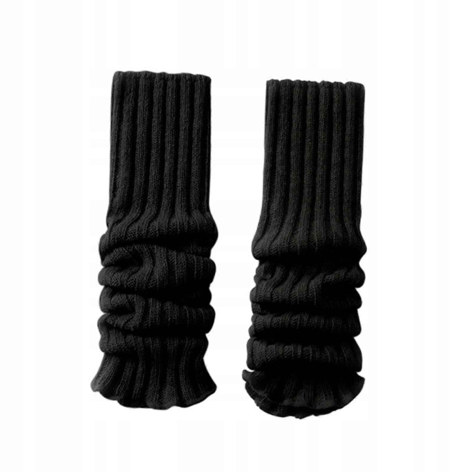 Knitted Leg Warmers Boot Cuffs Knee High Pile Up Socks Cover 44cm Black