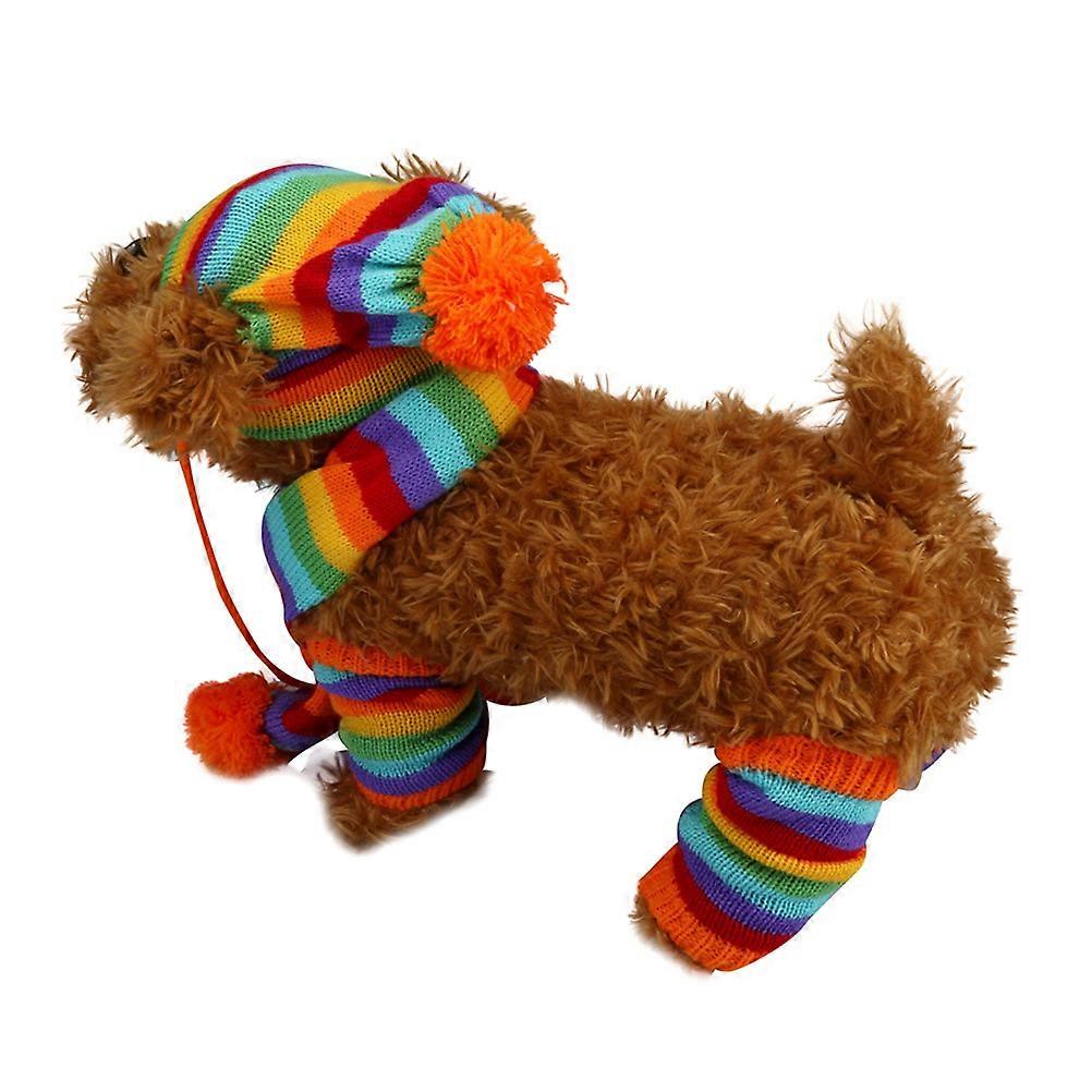 1 Set of Knitted Winter Dog Scarf and Hat Set Pet Costume Warm Clothes Festival Accessories Size Rainbow Color