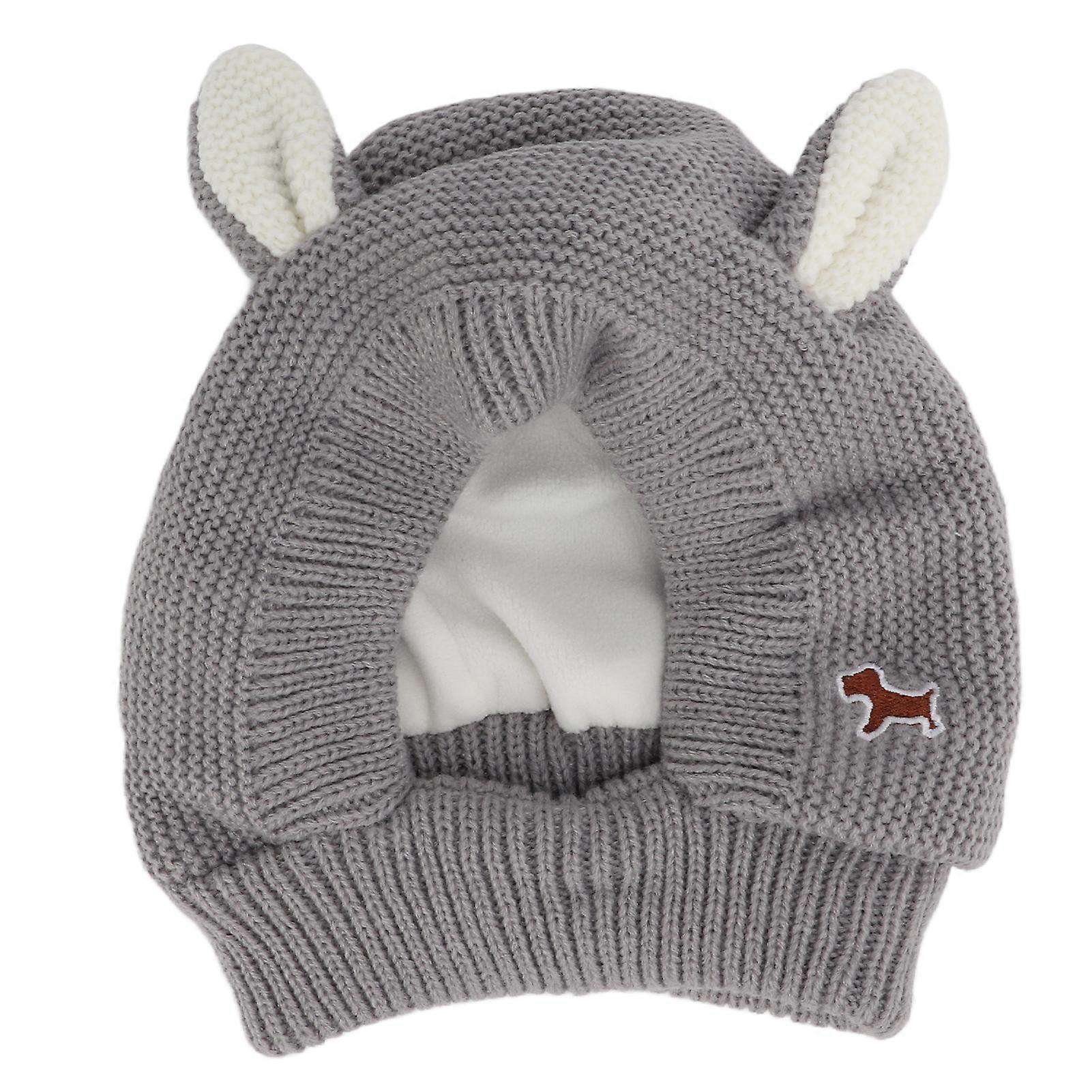 Knitted Rabbits Ear Pet Hat Noise Protection Warm Dog Grooming Earmuffs Hat for Large DogsGrey