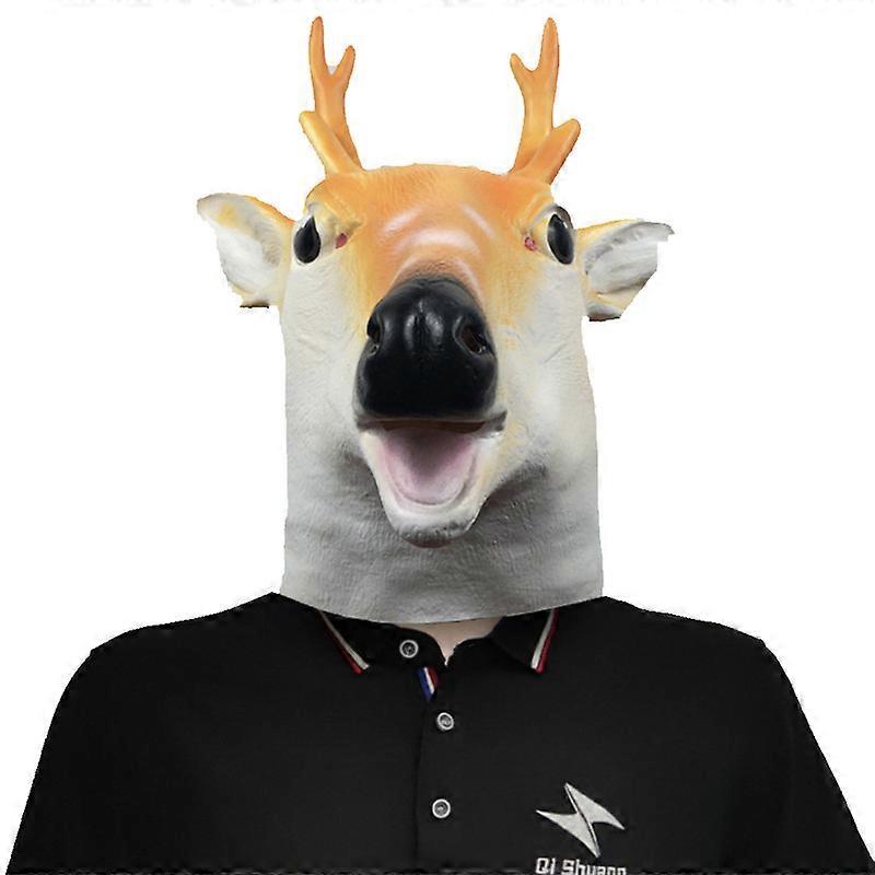 Sika Deer Mask Animal Head Helmet Giraffe Masks Spotted Deer Full Over Head Mask Deluxe Costume Party Latex Cervus Nippon Face Mask for Adult